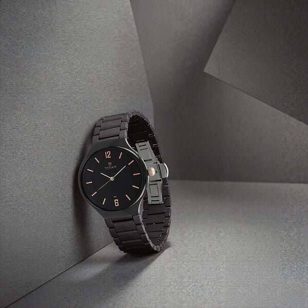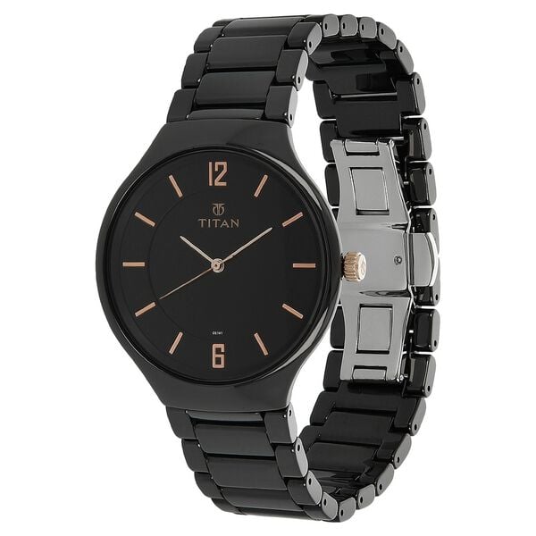 Titan Quartz Analog Black Dial Ceramic Strap Watch for Men