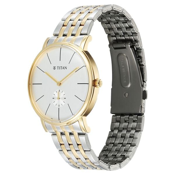 Titan Elegance Analog with Small Second and White Dial Stainless Steel Two Toned Strap Watch for Men