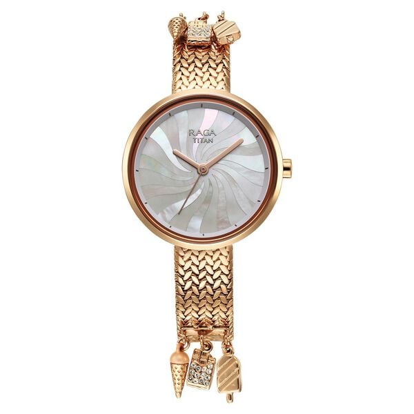 Titan Raga Memoirs Quartz Analog Mother Of Pearl Dial With Rose Gold Metal Strap Watch For Women