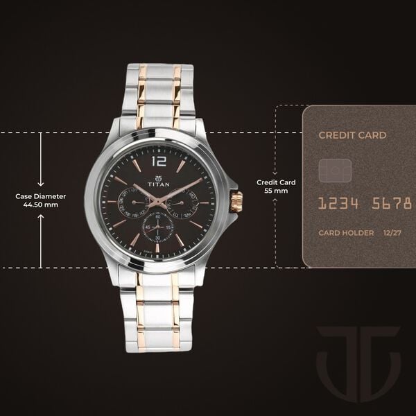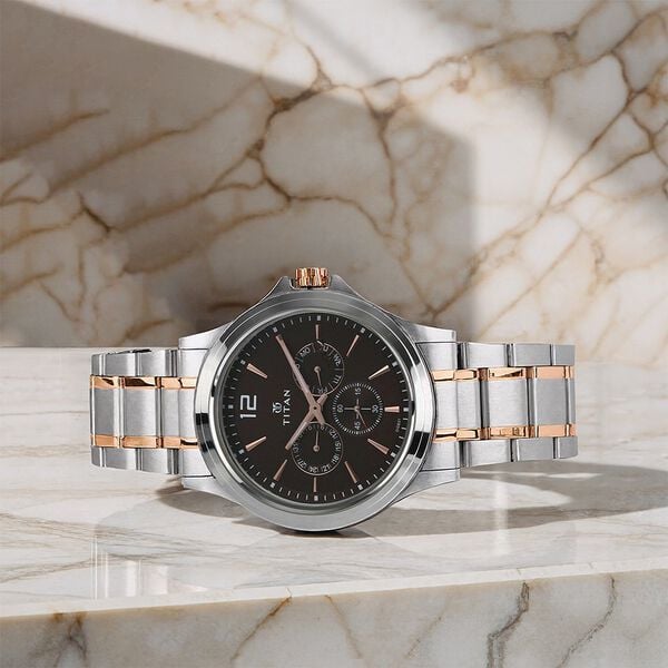 Titan Workwear Quartz Multifunction Brown Dial Stainless Steel Strap watch for Men