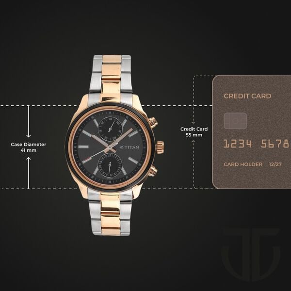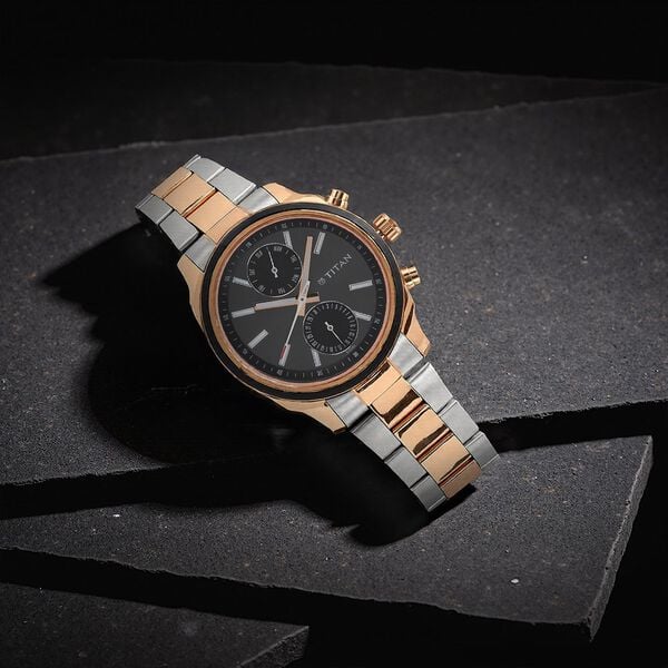 Titan Men's Metropolitan Luxe: Multifunction Black Dial with Two-Tone Stainless Steel Bracelet Watch