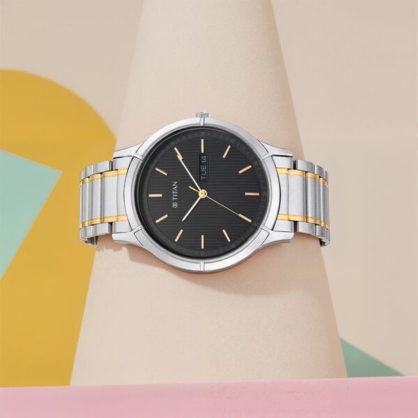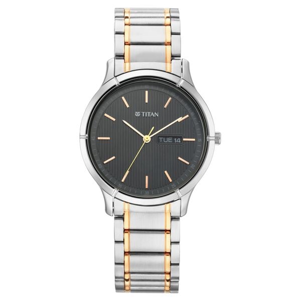 Titan Quartz Analog with Day and Date Black Dial Metal Strap Watch for Men